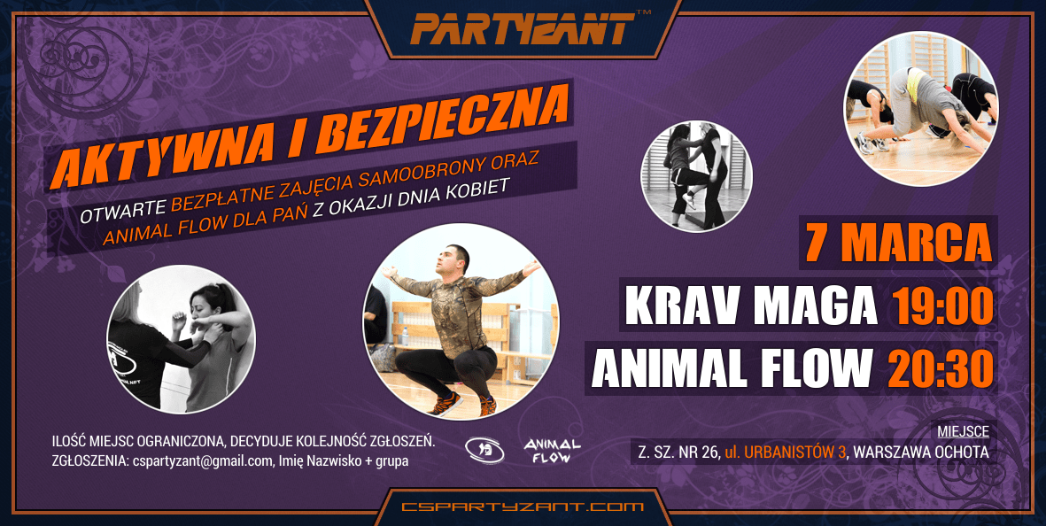 Zapraszamy panie na otwarty nieodpłatny warsztat samoobrony oraz Animal Flow z okazji Dnia Kobiet, który odbędzie się 7 marca (środa).