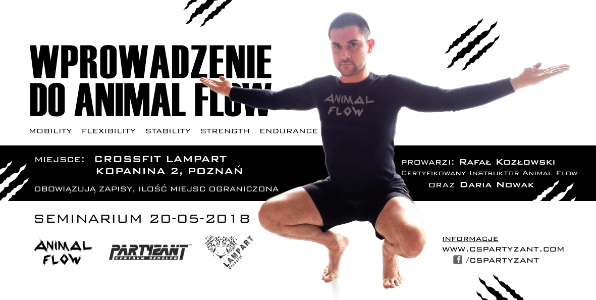 Uwaga wprowadzenie do Animal Flow również w Poznaniu w dniach 20 maj 2018 r. Seminarium będzie obejmować wybrane elementy instruktorskiego poziomu-1 Animal Flow dedykowanego osobom początkującym. Zapraszamy wszystkich pasjonatów ruchu, którzy chcą dowiedzieć się czym tak naprawdę jest Animal Flow.